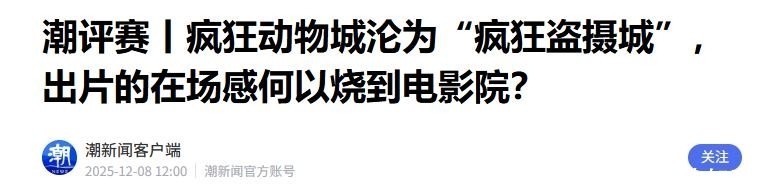 潮新闻客户端2025-12-08潮评赛丨轻易动物城沦为“轻易盗摄城”,出片的在场感因何烧到电影院?
