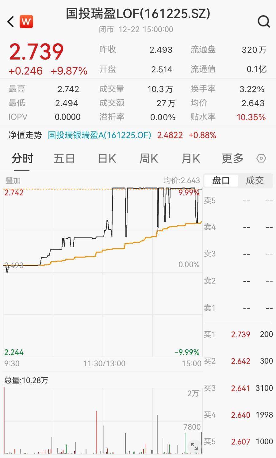 12月22日开云体育,国投瑞银基金旗下的国投瑞盈LOF(161225.SZ)在二级市集出现屡次涨停。