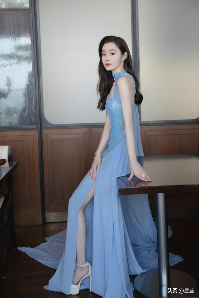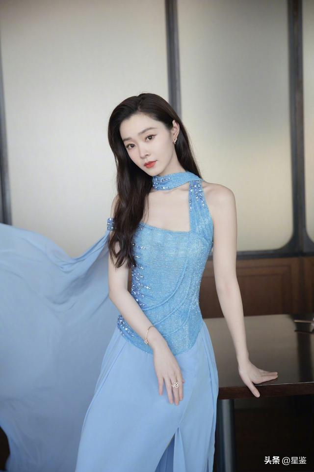 这件挂脖水蓝长裙太懂择善而从了,挂脖蓄意刚好透露纤细的肩颈线条,把直角肩和天鹅颈的上风拉满,上半身的亮片水钻在光下细碎醒目,不会过于豪放,反而多了点精细贵气。下半身的雪纺拖尾和高开叉,走路时随风飘舞,既藏住了腿部小污点,又能暗暗拉长比例,小个子穿也能穿出大气场。